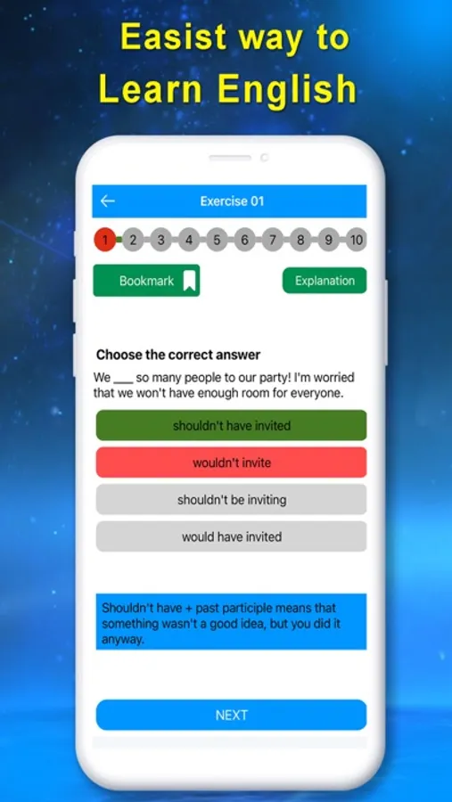 Get our easy to use English learning app and test your English Grammar skills.
