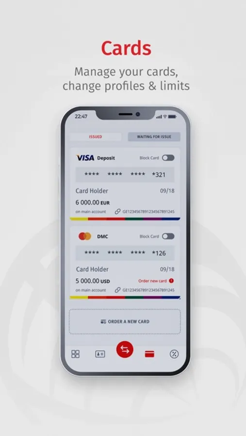 • Manage your cards - link/unlink accounts, change profiles and limits, block and unblock the card.