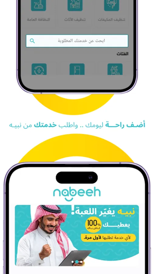 نبيه هو تطبيق ومنصة الكترونية على الويب والجوال لطلب الخدمات المنزلية تحت الطلب بطريقة سهلة وموثوقة من خلال التكنولوجيا.