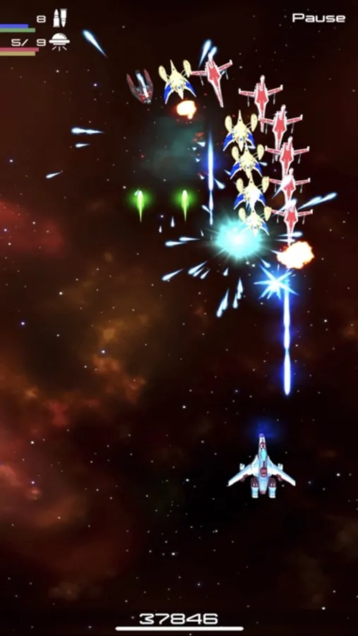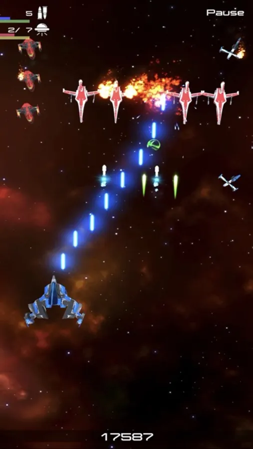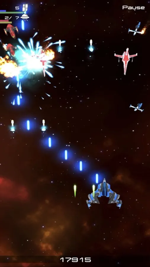 Five types of Ships with unique weapons that you can upgrade with technology gained from destroyed enemies.