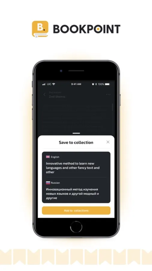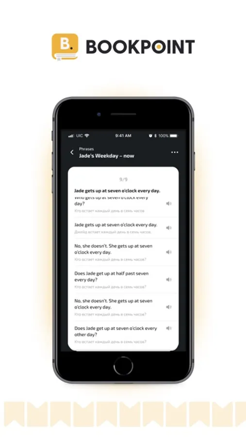 Bookpoint ilovasi sizga ingliz tilini qulay va samarali o‘rganishda yordam beradi. Ilovada maxsus audioli va matnli kitoblar taqdim etilgan. Quyidagi imkoniyatlar sizni kutmoqda: