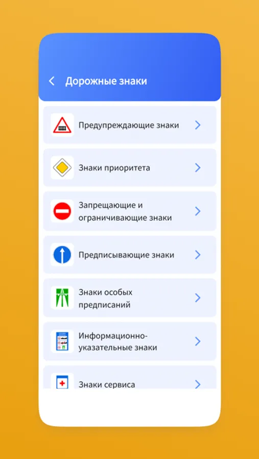 • Полный список всех соответствующих государственных и национальных дорожных знаков.
