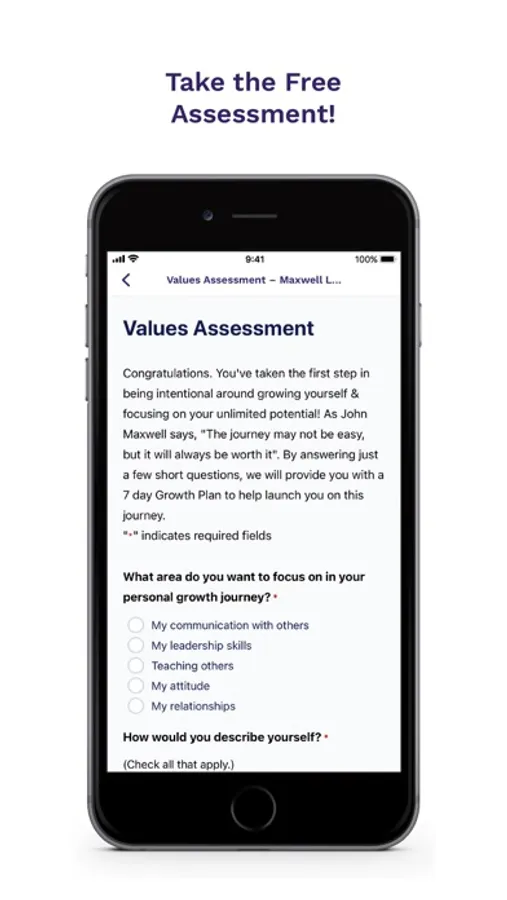 - Personalize your experience. To start, take our free Personal-Growth Assessment to discover what your top values are and immediately being to grow with curated content just for you!