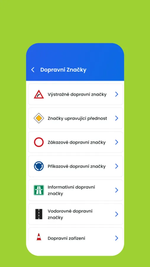 3. Dopravní značky - úplný seznam všech příslušných dopravních značek, kategorizováno.