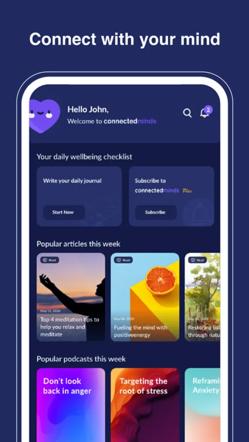 Connect with your mind and start your journey with our mental wellbeing app that helps you discover health, contentment, purpose, and connection. connectedminds is the number one global mental wellbeing platform for everyone who cares about their mental health. The platform offers immense amount of mental wellbeing content in the form of Podcasts, Articles, Posts and Guides curated by our carefully hand-picked, licensed Psychologists, Therapists and Counselors. All this unlimited mental wellbeing content can be accessed by subscribed users.