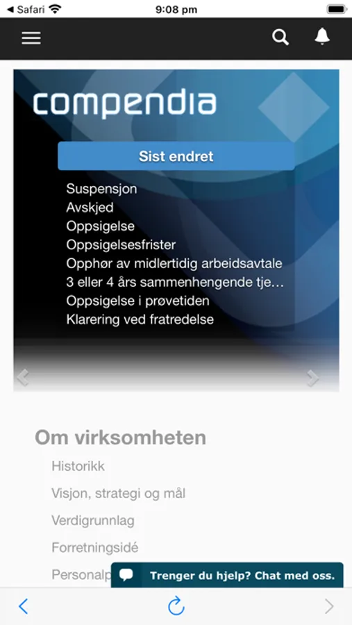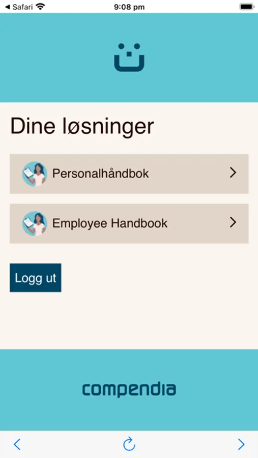 App for Compendias systemer. Her kan brukeren enkelt rapportere avvik, arbeide med risikoer og få tilgang til håndbøker for personal, ledelse, hms og kvalitet.