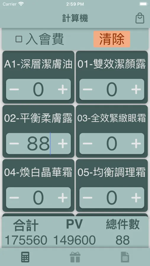計算天麗生技公司的各產品總售價及其PV總和。同時提供週年慶贈品資訊。