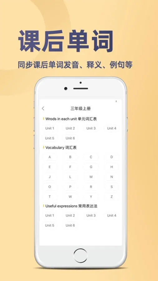 同步小学英语课本所有课后单词、词组、例句的发音、释义等等。卡片式的学习方法,让小学英语学习更加高效,大大提升孩子的英语水平。