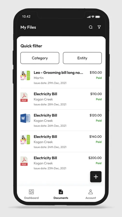 File & File is a virtual, interactive filing cabinet. It allows you to store and categorise your documents as you would in a physical filing cabinet at home, with the ability to easily find your files from anywhere using our mobile and web applications.