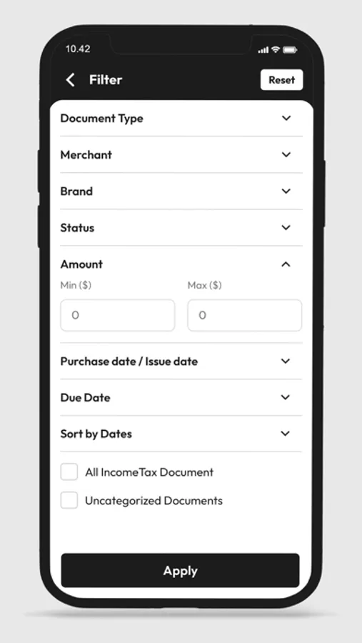 - Receipts & Warranty file type to allow you to store and manage any big (or small) purchase documentation and associated warranty information.