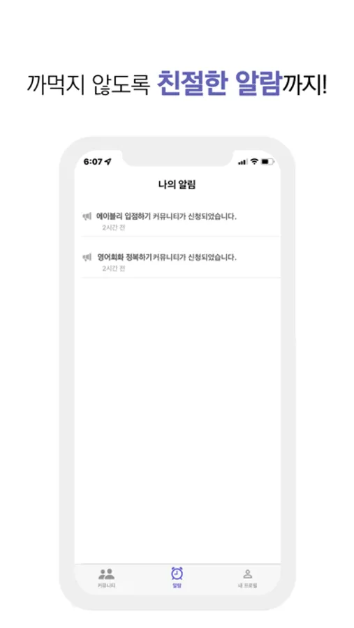 커뮤니티 신청이 완료되면 확인 알람을 드립니다. 그리고 커뮤니티 시작 하루 전에 알람을 보내드리니, 잊지 않고 참여하실 수 있습니다.