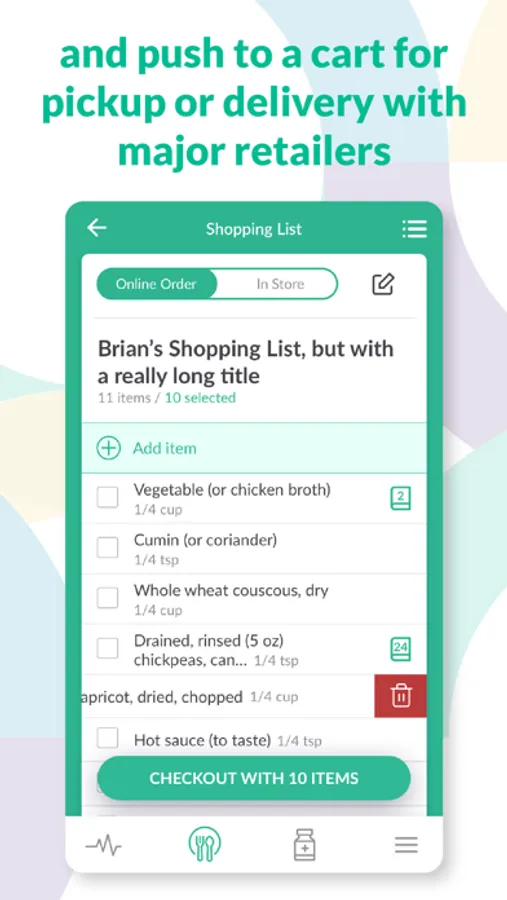 • Healthy without the hassle! Add recipe ingredients and recommended foods to your shopping list for online purchase via Walmart, Kroger, Target, Amazon Fresh or Instacart.
