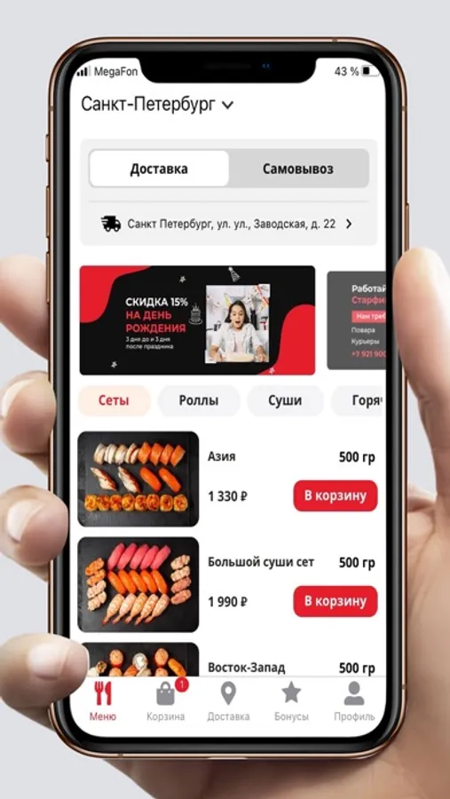 Совершайте покупки своих любимы роллов и суши, в приложении Starfish.