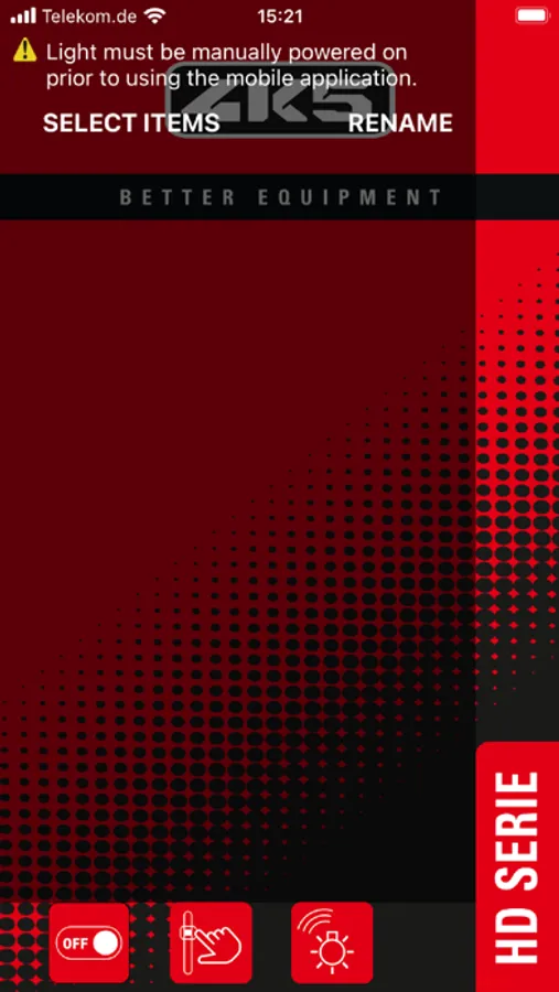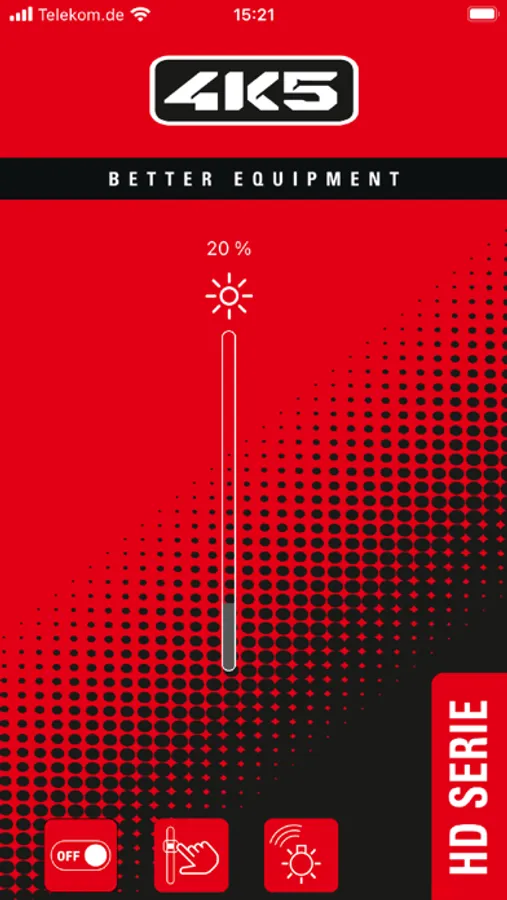 The Light Control app improves efficiency, flexibility and convenience when working on site. It allows 4K5 work lights to be controlled from a smart phone over a wireless connection. The output of the light can be dimmed in five levels from 20 % to 100 % for optimum and quick adjustment to the actual situation and task. In addition to the display in per cent, the set light level is easy to identify from an easy-to-read graphic. Four work lights can be connected to the app at the same time. It is also possible to operate a work light from two smart phones with synchronised operating status. For work lights running from a battery, information on the charge is provided by a colour and per cent display. The power consumption can be effectively reduced by adjusting the light output to suit requirements as only as much electricity is consumed as is required to complete the task. The work lights can be quickly switched off remotely when leaving the site.