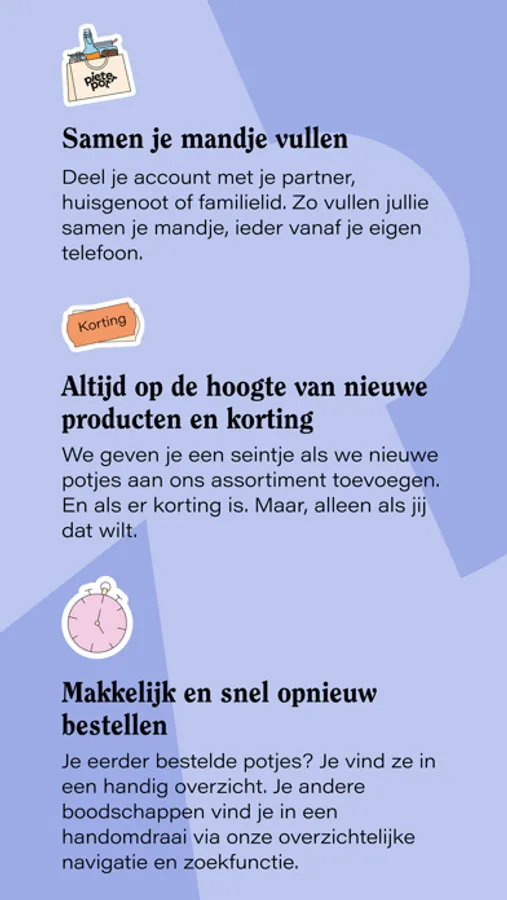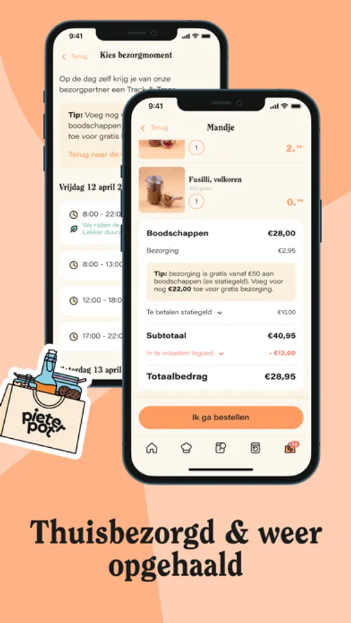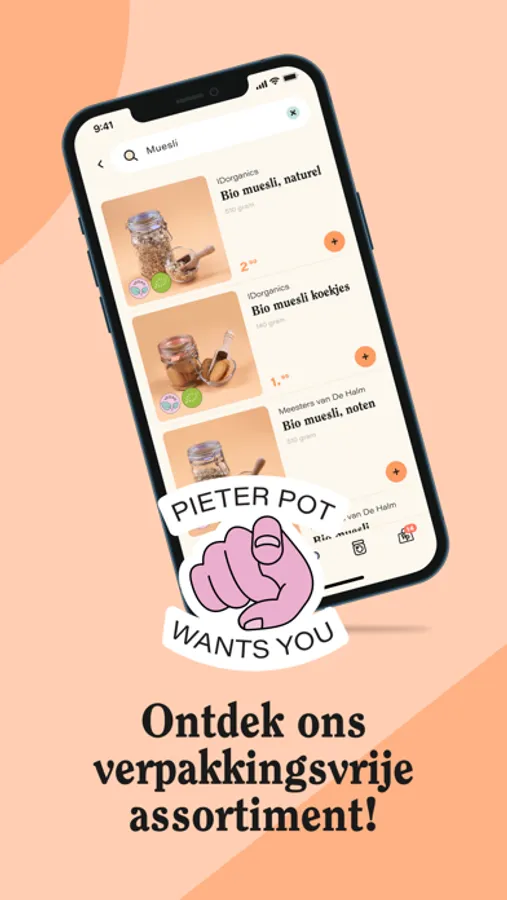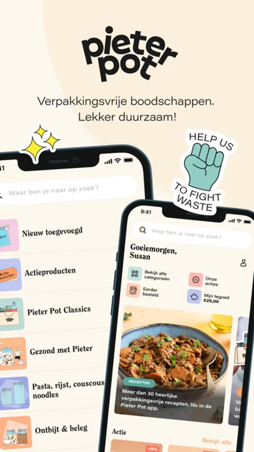 Bespaar afval én CO2-uitstoot. Bestel je verpakkingsvrije boodschappen met de Pieter Pot App en wij bezorgen ze bij jou aan huis, in heel Nederland. Start nu en ontvang 15 euro korting op je eerste bestelling.
