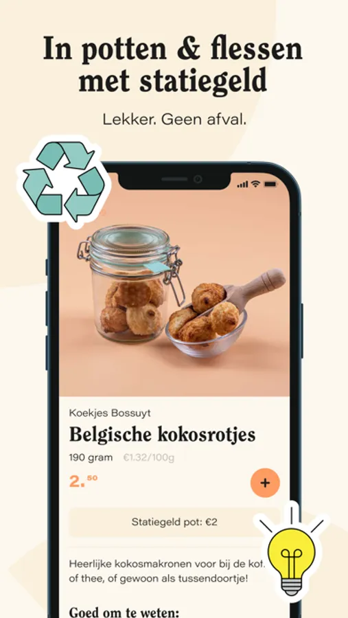 1. Wij kopen onze producten in bulk in en bezorgen deze in statiegeldpotten.