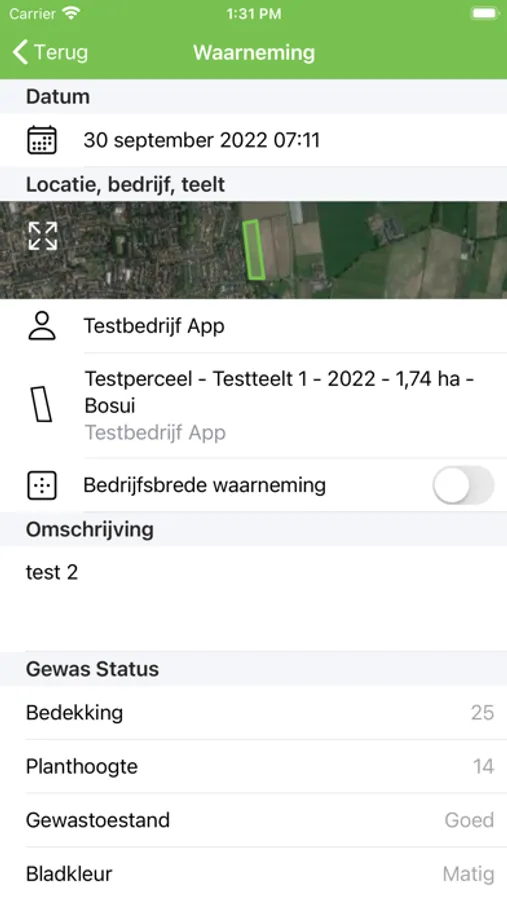 Met QCrop kunnen telers eenvoudig gewasspecifieke waarnemingen maken en delen met adviseurs. De waarneming wordt op GPS-locatie aan een gewas gekoppeld zodat maatregelen goed kunnen worden onderbouwd.