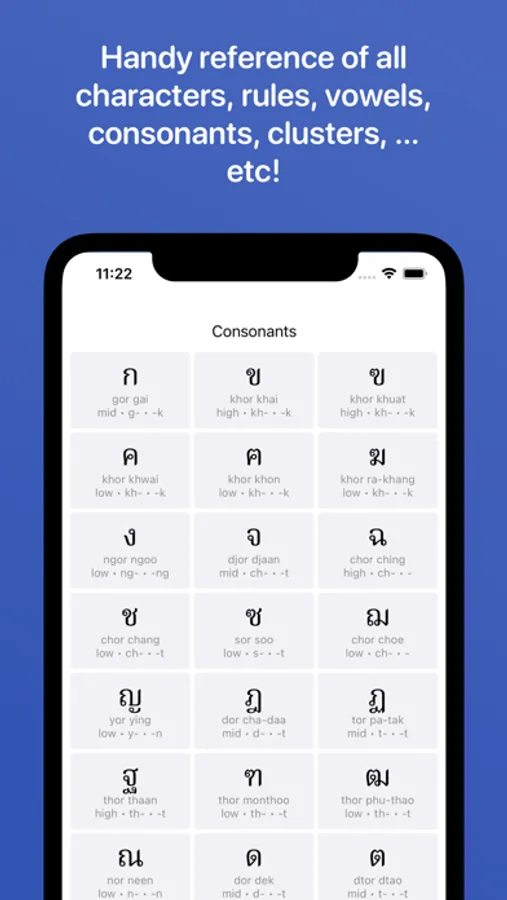 "Read Thai" is a modern app to help you learn how to read the Thai alphabet!