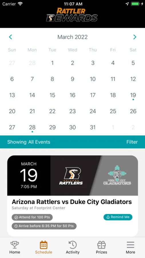 Rattle Rewards is the official rewards program for Arizona Rattlers! Go to events, earn points for attending, and use those points to redeem prizes and fan experiences at Rattlers' events. Joining is FREE and simple - Sign up with your email and opt-in to receive push notifications. By downloading Rattler Rewards, you'll also have access to mobile tickets as well as exclusive discounts and offers for local restaurants and retailers.