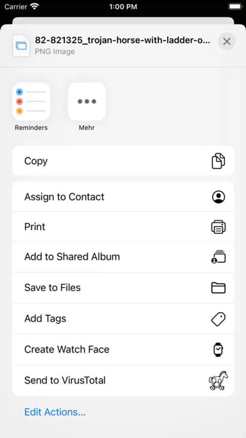 With Ask VT you can check URLs and files for malware using the online service VirusTotal (https://www.virustotal.com). VirusTotal is a free service from Google that scans Internet addresses and files with a variety of virus scanners. Ask VT can also be called from the Share menu in other apps. In Apple's Mail app and in Safari, the Share menu appears when you press a little longer on a link.