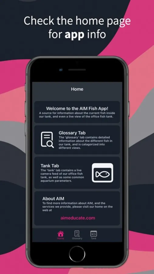 Welcome to the AIM Aquarium app! In this app you will find information about the fish in our tank and soon even a live view of the office aquarium.
