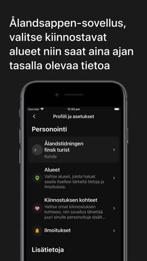 "Ålandsappen"-sovelluksella saat tietoa ja uutisia Ahvenanmaalta kiinnostuksesi mukaan. Uutisia ja yhteisötietoa, vinkkejä hyödyllisistä linkeistä, tapahtumia, ravintoloita, ostoksia, toimintaa koko perheelle ja muuta matkailutietoa. Kaikki koottuna yhdelle ja samalle kanavalle! Sinulla on myös mahdollisuus räätälöidä sovelluksen sisältöä niin, että se sopii juuri sinulle ja tietysti mahdollisuus aktivoida push-ilmoitukset tärkeistä tapahtumista.