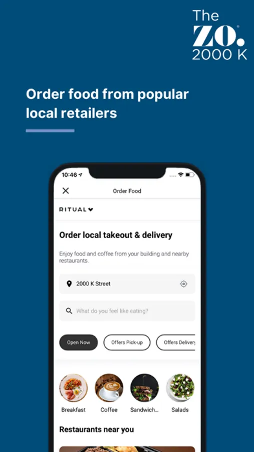 Make the most of your workday. Use the ZO. app to access an unparalleled collection of services, experiences and perks curated exclusively for tenants of Tishman Speyer Properties. Offerings include fitness classes, personal wellness services, medical offerings, community events, meal delivery, and much more.