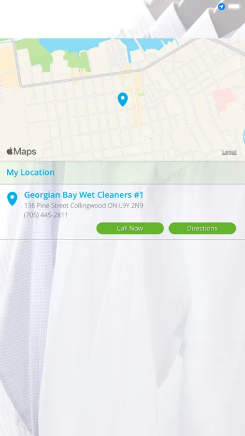 5) Quickly contact Georgian Bay Wet Cleaners by phone or email and access their website all directly from your device.