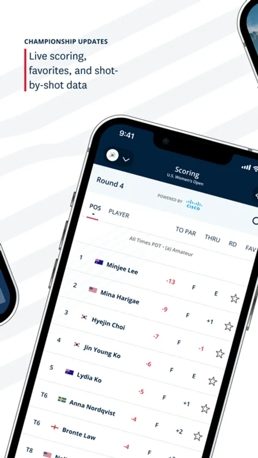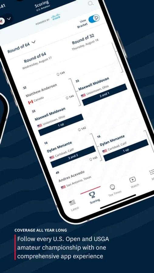 Keep up with all of the action as it unfolds for every 2023 USGA championship, from every round of stroke play during the U.S. Opens to every single match for all amateur championships. Favorite unlimited players to build customized leader boards. Watch every televised shot of the U.S. Open, U.S. Women’s Open, U.S. Senior Open, and U.S. Senior Women’s Open with highlights right within the players’ scorecards.
