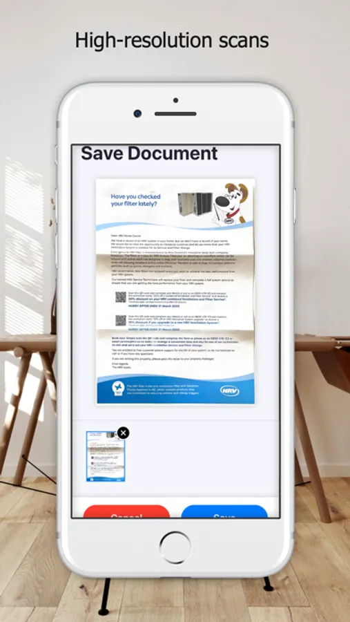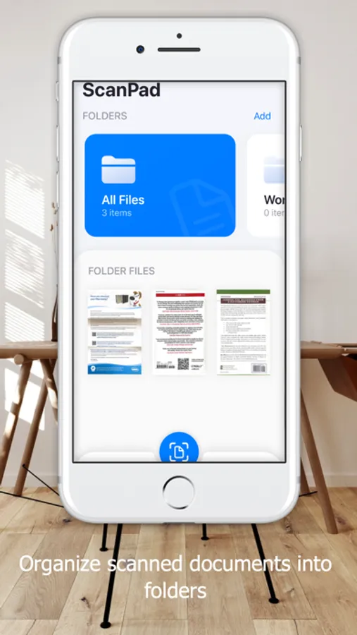 ScanPad is a quick and easy to use document scanner. Simply set your document on the table, frame it up on the screen, and take a picture. That's it! The document will be converted to a PDF file and stored locally on your device.