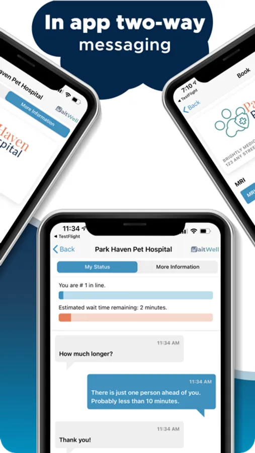 While you are waiting, you can fill out intake forms and communicate with staff through in-app messaging. Never wait in line again just to ask a quick question.