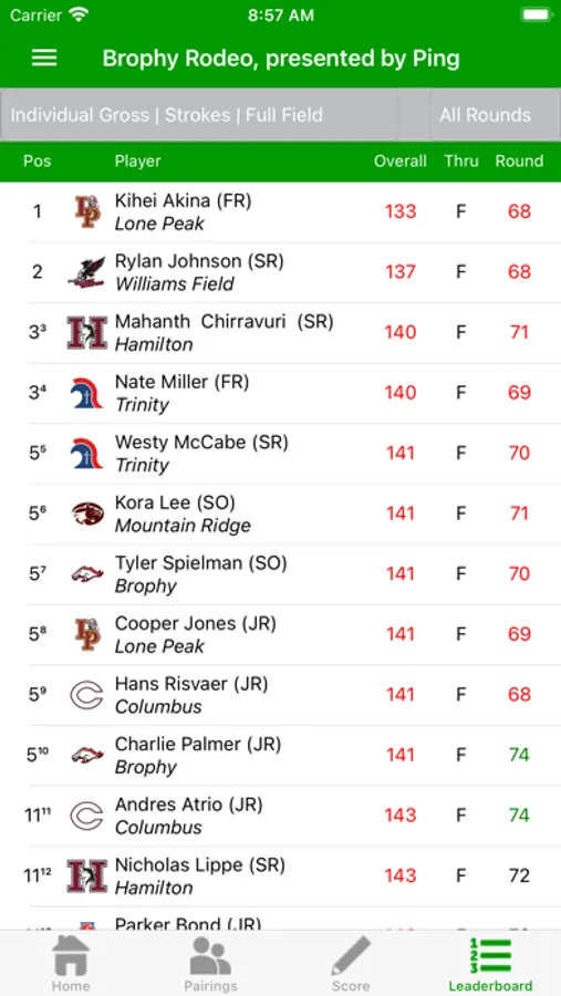 The Intercollegiate Golf App combines mobile and desktop application technology to allow coaches, golfers, spectators and others to view live leaderboards during events and tournaments. On game day, just enter your scores into our easy-to-use scoring interface to let spectators and competitors keep track of your round in real time.