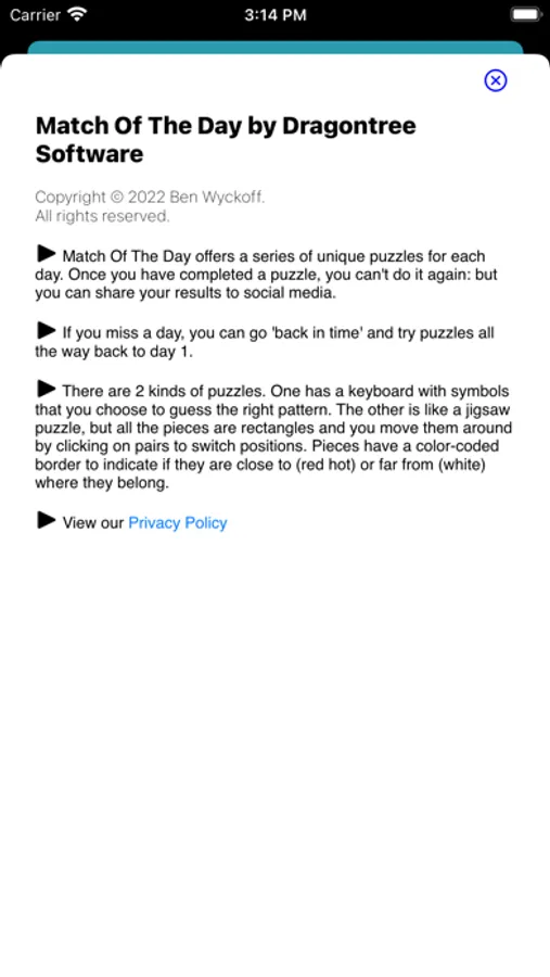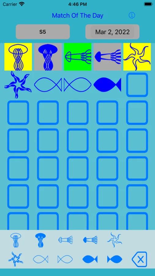 Each matching puzzle type has a different number of columns or images that need to be matched. As you tap on the images, the rows are filled in and color coded depending on whether the image is in the exact right spot, in the wrong spot, or not part of the solution at all. Once a puzzle is done, you can't do it again: but you have the chance to share your results on social media! And if you miss a day, you can go "back in time" and try out puzzles from other days, all the way back to "day 1".