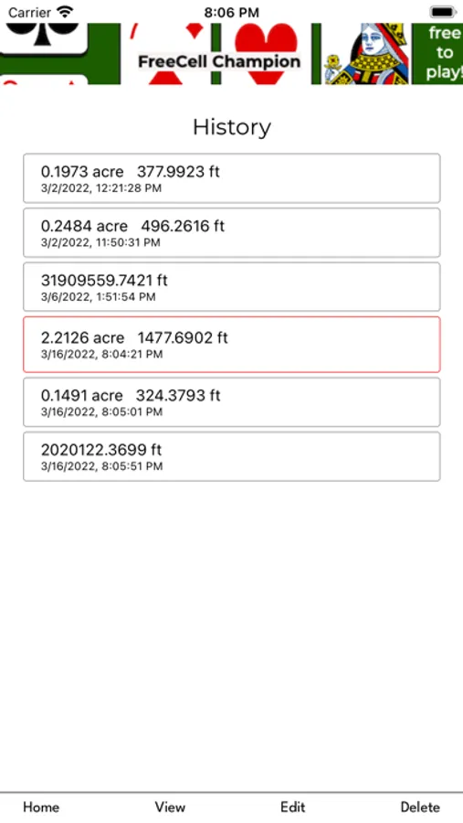 Measurements are saved in the history screen and can be recalled for viewing, editing and sharing.