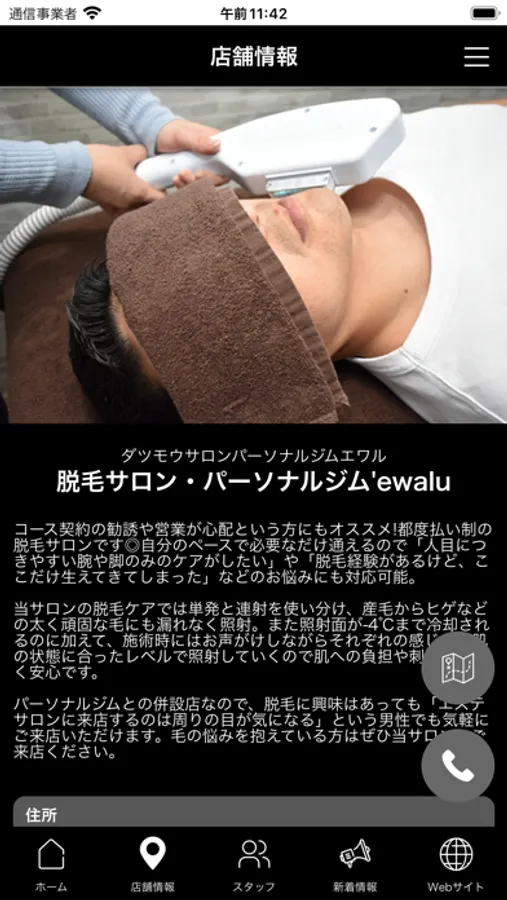 店舗のマップが表示され、地図アプリとも連携しているので、初めてのご来店の時も簡単に見つけることができます。