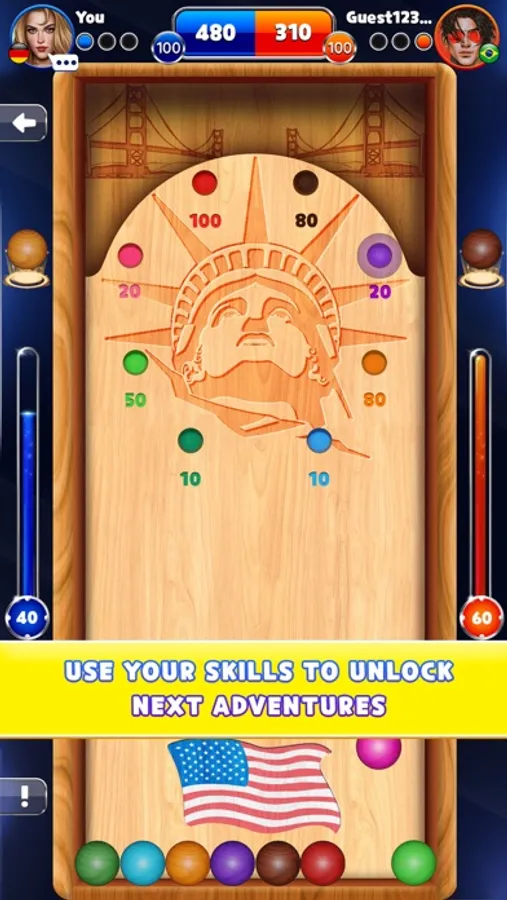 Each table is a typical image of a country, stylized with textures on the background of the table: America - Goddess of Liberty, France - Eiffel Tower, Egypt – Pyramid, England – Bigbang clock,… . Each table is an extremely attractive challenge that needs you to have high skills, ingenuity, and good thinking to be able to overcome.