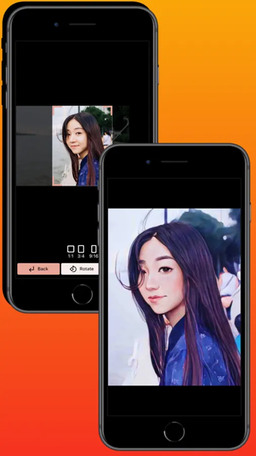 - Select or capture an image, crop and convert it into the anime-style image