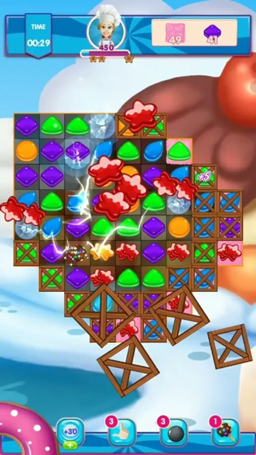 Sweet Symphony also sports new special cookies like the cross, an explosion that clears cookies in diagonal directions!
