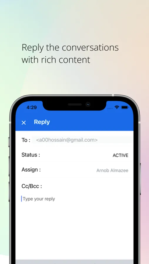 Shared Inbox - receive all your support and sales queries on the respective shared inbox, where all you agents can have access and view the queries. You can assign tasks to an agent for reply or you can reply yourself.
