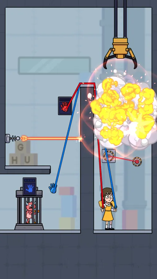 Use blue hand and red hand to hack electrical circuits or grab anything from afar.