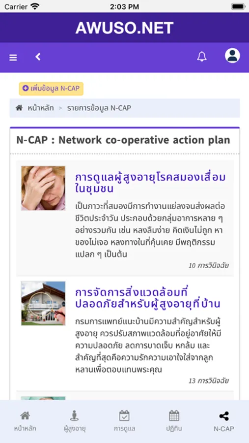 a user to user communication application. providing health information (detail , image) of elder users to looking after them.