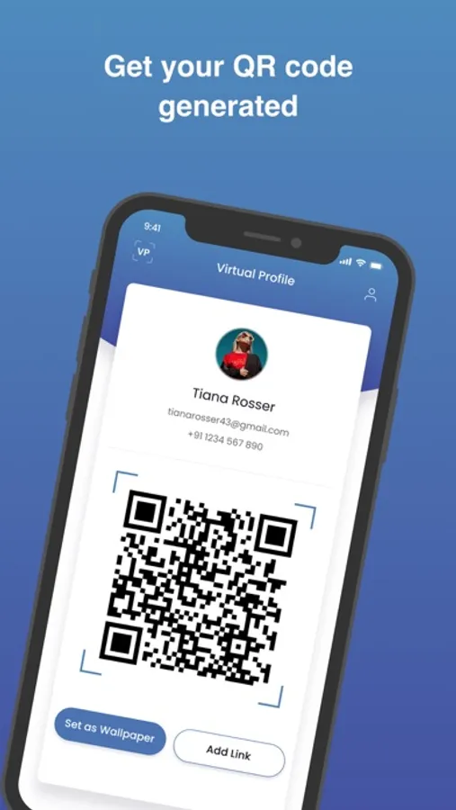 Virtual Profile aims to create a quick virtual profile. Get your own business QR code created on the fly by adding your social media profiles and basic information. You can set it as a wallpaper for your connections to scan anytime and view your business card.