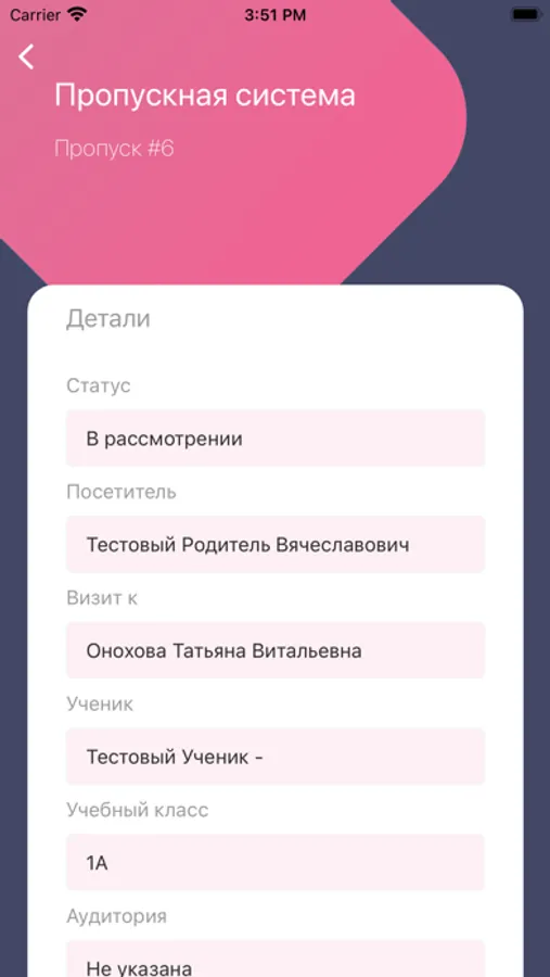 Приложение предназначено для заказа пропуска в школу родителями учеников школьного заведения.