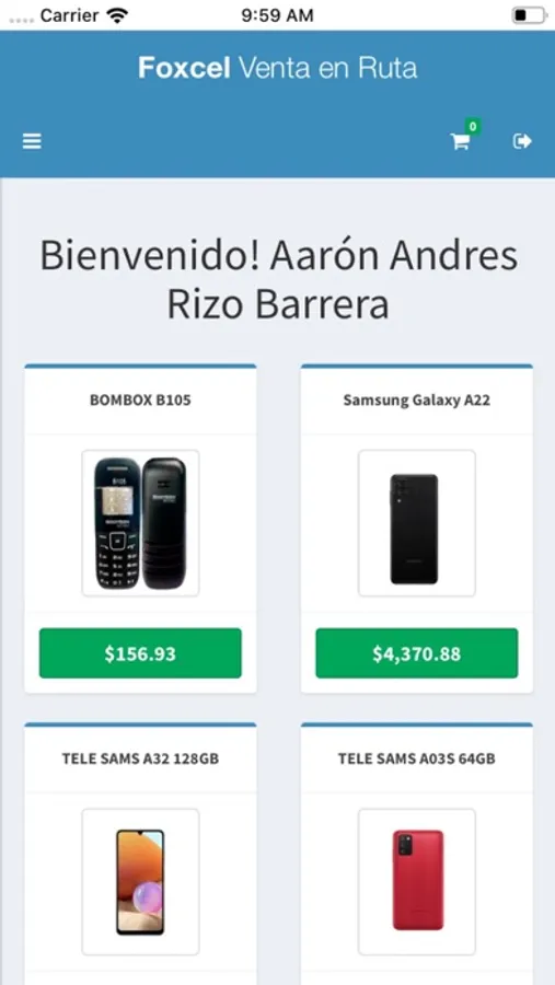 Aplicación diseñada para la venta de equipos para distribuidores de Foxcel.