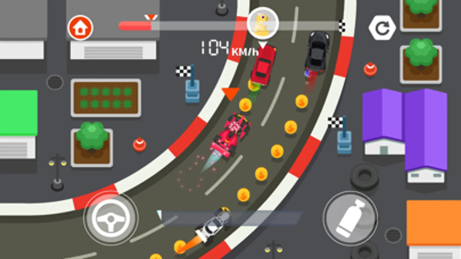 • Drive the racing car, become a Pro Racer and sprint to the finish line.
