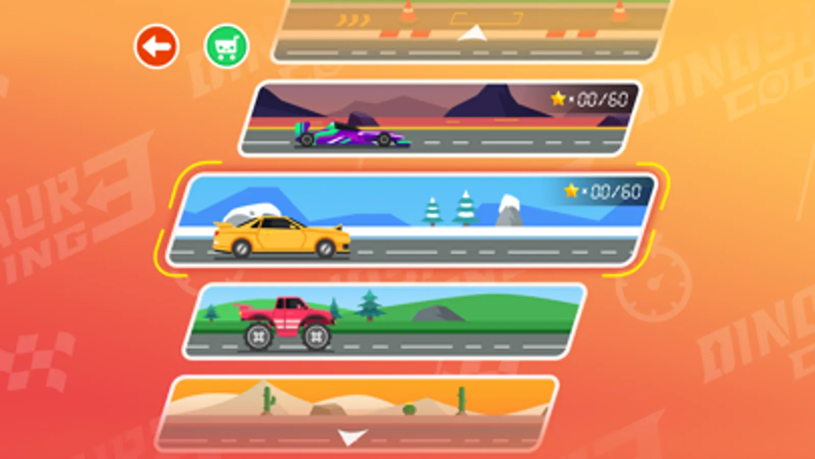 In Dinosaur Coding 3, there's 3 different options for great learning fun — kids can drive cars themselves to rush across the finish line at the fastest speed, they can use code to figure out and plan driving routes, and they can complete professional driving career tasks. They'll have a blast!