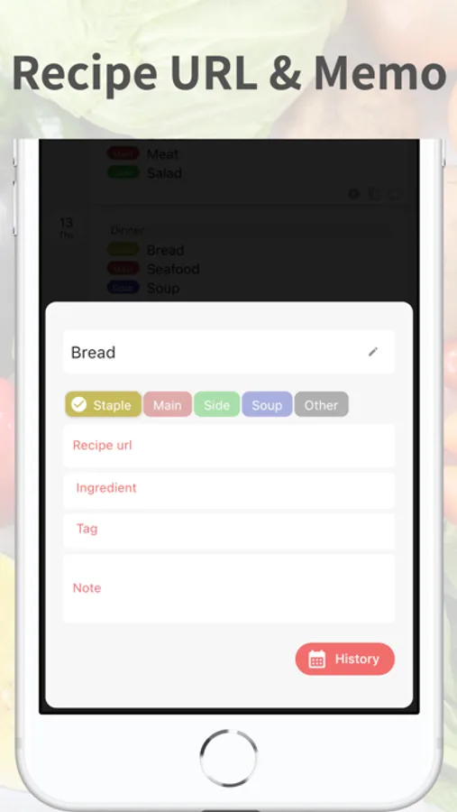 You can enter recipe URLs and memos for each dish, which is useful for checking how to make a dish.