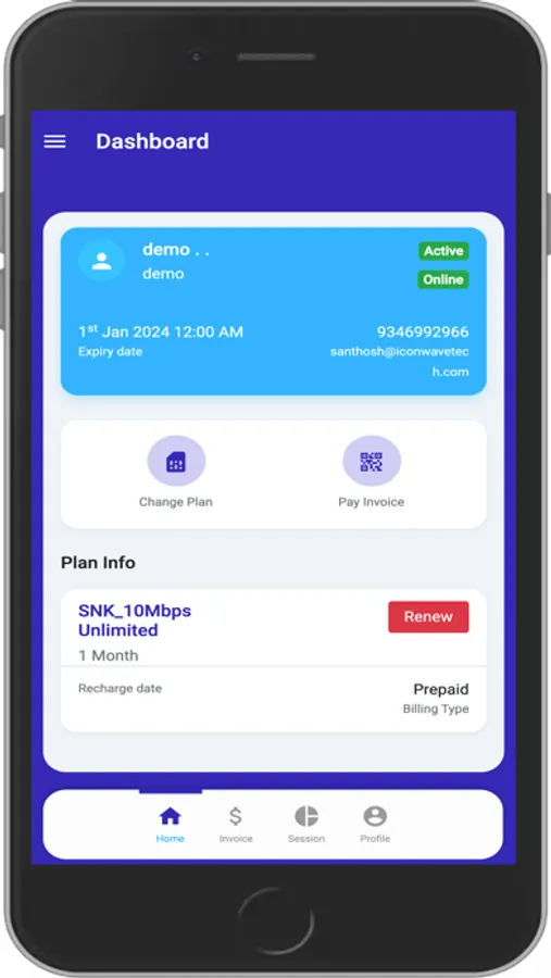 Access your Dee Net My account data from your phone. Review past, outstanding invoice and make online payment. Be alerted about your monthly data usage and remaining data balance, view usage graph of past months, Update user profile, add Top ups, Plan change, review about payment history,De Net Prime membership, make payment usingDee Net Wallet.