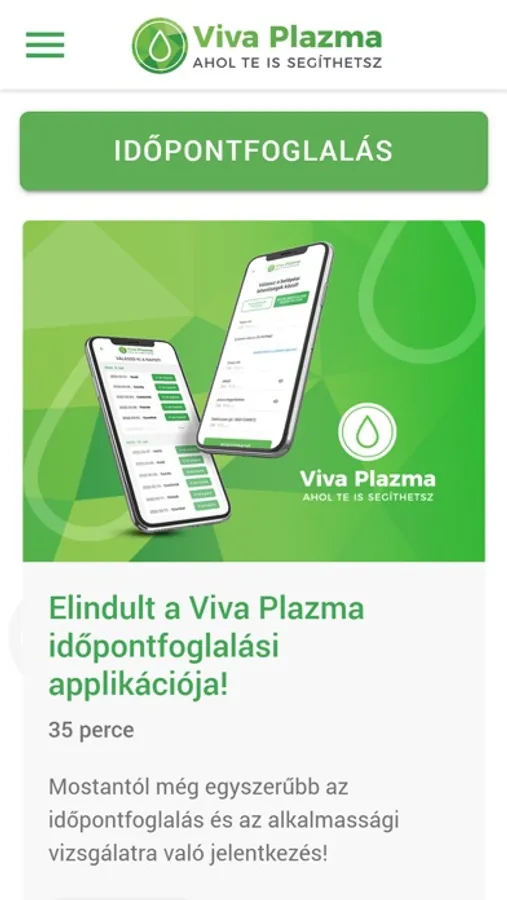 Időpontfoglalást és alkalmassági vizsgálatra való jelentkezést tesz lehetővé a donoroknak, illetve értesülhetnek a legfrissebb hírekről. A Donorok az alábbi menüpontok és lehetőségek közül választhatnak: főoldal, időpontfoglalás, hírek/akciók, üzenetek, kapcsolat, hibabejelentés, kijelentkezés.