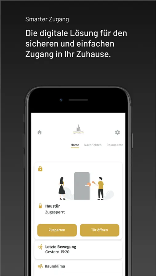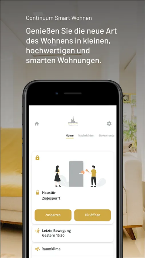 Mit Continuum Smart Wohnen stehen Ihnen die Türen offen. Vergessen Sie schwere Schlüsselbunde und teure Notdienste, denn mit der Smart Wohnen App haben Sie alle Zugänge direkt in der Hand. Mithilfe modernster Technik lassen sich die Wohnungs- und Haustür mit einem Klick per Smartphone öffnen, verschließen und verwalten.
